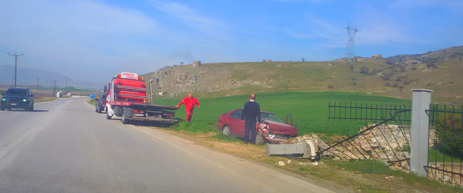 Το συμβάν έγινε λίγο μετά τις 9.45 στο ύψος του χωριού Ελευθέριο, όταν αυτοκίνητο στο οποίο επέβαιναν δύο άτομα, ένας άντρας και μία γυναίκα, για άγνωστη μέχρι στιγμής αιτία, εξετράπη της πορείας του και προσέκρουσε σε παρακείμενο αυλόγυρο.