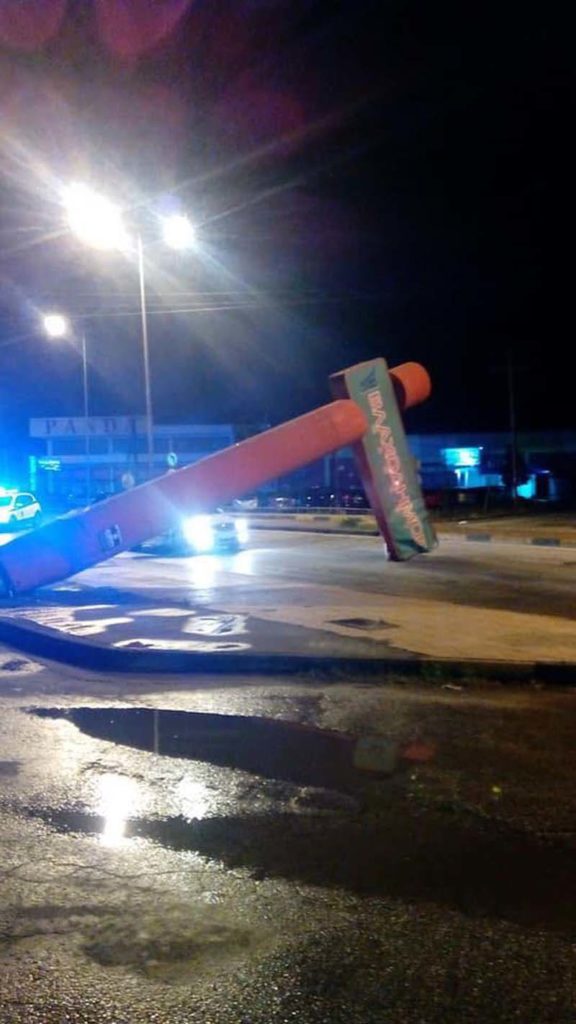 Όπως μπορείτε να δείτε στις φωτογραφίες η μεγάλη πινακίδα βρέθηκε στον δρόμο με κίνδυνο να πέσει πάνω στα διερχόμενα αυτοκίνητα. Στο σημείο έφτασε και περιπολικό της αστυνομίας.