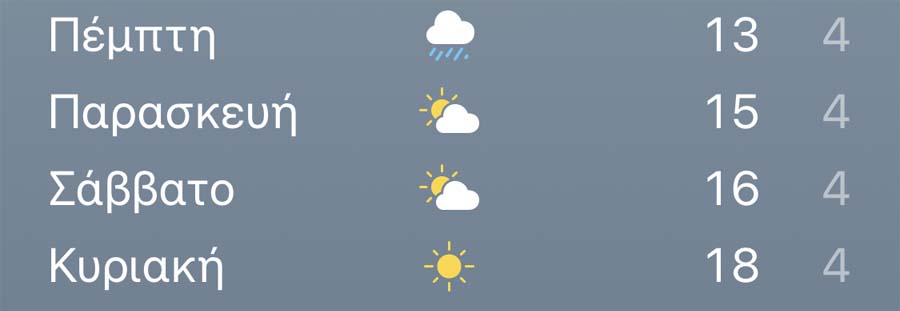Σήμερα Τετάρτη η θερμοκρασία το μεσημέρι δε θα ξεπεράσει τους 16 βαθμούς Κελσίου, ενώ αύριο Πέμπτη αναμένονται και βροχοπτώσεις και περαιτέρω πτώση της θερμοκρασίας.